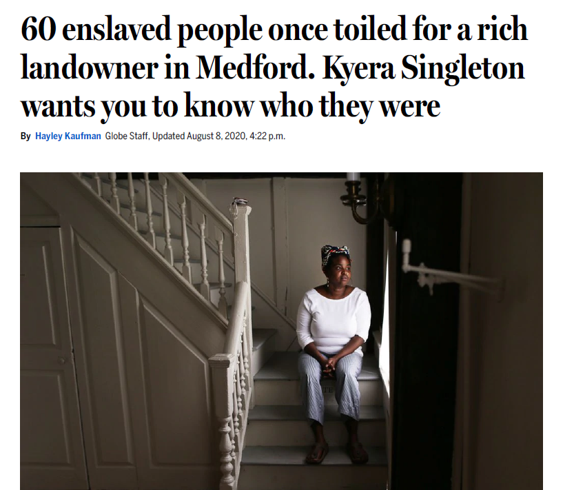 In conversation with the Boston Globe, Executive Director of the Royall House & Slave Quarters, Kyera Singleton, shares her thoughts on the past, present, and future of our historic site and its place in the public memory of slavery and its legacies.
