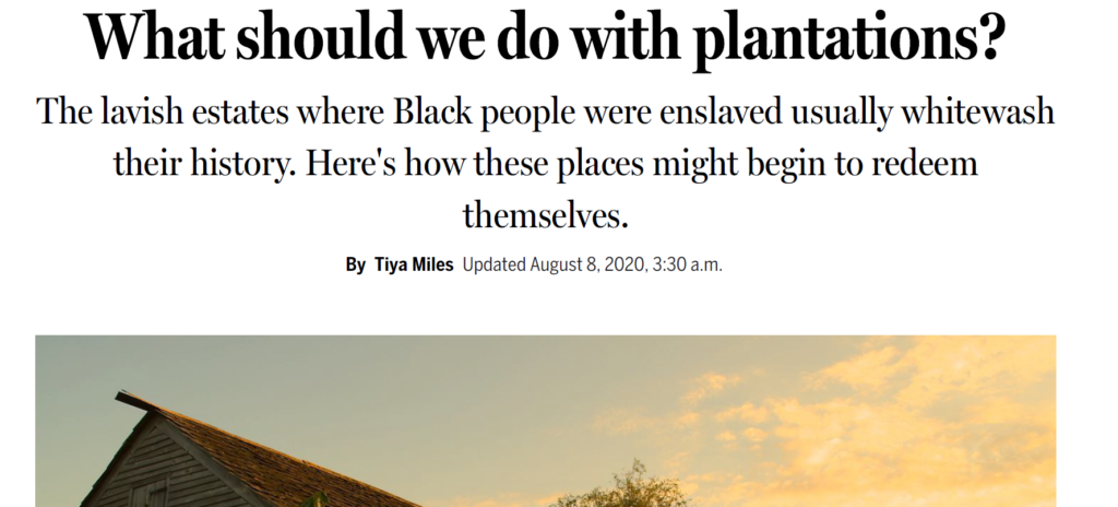 In this issue of the Boston Globe, historian Tiya Miles explores the commemoration of slavery at former plantations across the country – including the Royall House and Slave Quarters. Quoted in the article, RH&SQ Executive Director Kyera Singleton shares, “I cannot stress enough that the Royall House & Slave Quarters is a museum that seeks not only to get the history of slavery right, but also to function as a site of memory…..I believe one of our strengths is the ability to help people reckon with our current political movement by being honest about slavery and the legacies of enslavement today.”